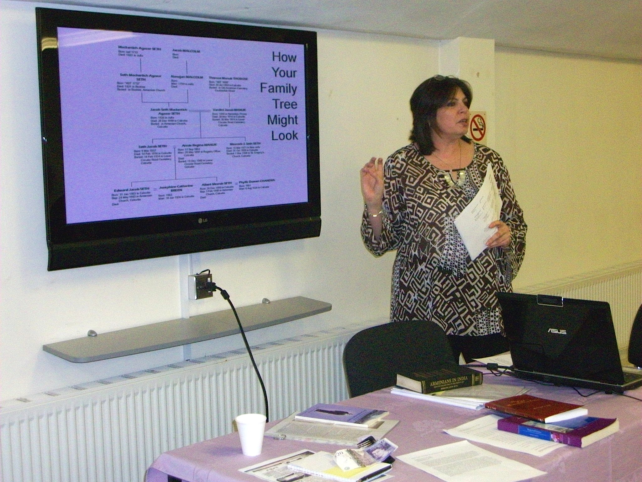 Hi thought your readers might be interested in the latest presentation I have done on Sir Paul Chater and Armenian Genealogy. NEWS RELEASE 21st February 2011 Sir Catchick Paul Chater and Armenian Genealogy Presentation in London By Liz Chater Liz Chater, a UK based family history researcher specialising in Armenians in India and the Far East, was invited by the Centre for Armenian Information and Advice (CAIA) Acton, London http://www.caia.org.uk to participate in their annual programme of Armenian Cultural awareness taking place during February and March of this year. The programme commenced on Sunday 20th February, and Liz began the session by speaking about Sir Catchick Paul Chater, an Armenian born in Calcutta, but whose life was spent in Hong Kong. She spoke about his early life, his family and his life’s work in Hong Kong. Liz also showed a short documentary film on Sir Paul Chater which was made in 2005 by the Armenian Church, Kolkata and ended with an interesting and lively question and answer session from the participants who attended. The second half of the programme was dedicated to Armenian family history and how to use the sources and resources of the internet to successfully trace ancestors. Through a PowerPoint presentation Liz showed how the many genealogy based websites on the internet enable the new researcher to look for information with comparative ease. This was a fantastic and friendly interactive session where Liz encouraged questions from members of the participating group who were eager to explore the resources brought to their attention by her. Many of them were surprised at the depth and breadth of the details available. Supplementing the presentation Liz also brought along a variety of documents she has acquired as part of her own research of Armenians in India. Of particular interest was an example of one of the earliest Armenian Wills she has which is dated 1761 and she explained how important genealogical information can be obtained from such documents. Misak Ohanian Chief Executive Officer and organiser of the cultural programme at CAIA thanked Liz for presenting such a diverse range of information in the short space of time available and hoped that she would return to do a second presentation at a future date. As part of Liz’s research on the Armenians of India and the Far East, she recently added to her website a slideshow which presents all the old Armenian churches that once had a flourishing community in Asia, this can be viewed at http://myweb.tiscali.co.uk/emcjnd/. Liz Chater is an unsupported and unfunded family history researcher specialising in Armenians in India. Liz is currently without a sponsor to enable her to continue and complete her research and publish it. She would be delighted to hear from anyone willing to consider sponsorship of the continuation of her research. Further information can be obtained from Liz at liz@chater-genealogy.com or her website www.chater-genealogy.com. ENDS
